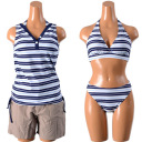 【三愛水着楽園】【2012年モデル】リアナのボーダー柄ホルタービキニにカバーアップとパンツが付いたセットミズギ [みずぎ][ミズギ]【ビキニ】【セット水着】【三愛】【Liana】ポロボーダーホルター4点水着7号 9号 11号 13号[水着][みずぎ][ミズギ]【大きいサイズ レディース】 【Liana】 ポロボーダーホルター4点水着 シンプルなトラディショナルボーダーの4点セットは 長めの丈の布帛パンツがセットになったカジュアルな水着です...