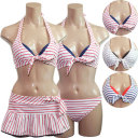 【三愛水着楽園】【SAN-AI】【2012年モデル】【ArnoldPalmer】アーノルドパーマーのボーダー柄ワイヤーホルタービキニにスカートが付いたセット水着[みずぎ][ミズギ]【ArnoldPalmer】アーノルドパーマー ヴィンテージボーダーワイヤー3点水着9号 11号 [ワイヤービキニ][水着][みずぎ][ミズギ] 【ArnoldPalmer】ヴィンテージボーダーワイヤー3点水着 色褪せたようなボーダープリントのレイヤードタイプホルタービキニ。レイヤードの内側はワイヤーブ...