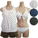 【三愛水着楽園】ナチュラルビューティーのドット柄ワイヤーホルタービキニにカバーアップとパンツが付いたセット水着[水着][みずぎ][ミズギ]【ビキニ】【水着 レディース】【NATURALBEAUTY】ダブル・ドットワイヤー4点水着9号 11号[水着][みずぎ][ミズギ] 【NATURALBEAUTY】ダブル・ドットワイヤー4点水着 カバーアップの胸元切替とギャザーが顔まわりをスッキリ見せる デザインで小さめのドット柄がトラディシ...
