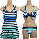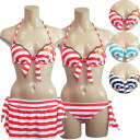 【三愛水着楽園】マリンボーダー柄ワイヤーホルタービキニにスカートが付いたセットミズギ[水着][みずぎ][ミズギ]【ビキニ】【水着 レディース】【BeachQueen】カリビアンボーダーワイヤー3点水着9号[水着][みずぎ][ミズギ] 【BEACH QUEEN】 カリビアンボーダーワイヤー3点水着 ビンテージ調マリンボーダーのワイヤーホルタービキニに スカートが付いたセット水着 胸元に碇プリン...