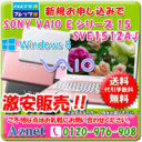 フレッツ光加入の方は19800円で購入できます。激安!!【SONY VAIO ノートパソコン VAIO Eシリーズ15 SVE1512AJ Core i3搭載モデル】Windows8 無線LAN WiFi カラー ホワイト ブラック ピンク ノートPC ノート型 パソコン 商品詳細品番VAIO Eシリーズ15 SVE1512AJ Core i3搭載モデル色ホワイト ブラック ピンクCPUCore i3 3110M/2.4GHz/2コアメモリ4GBHDD320GB ドライブDVDスーパーマルチドライ...