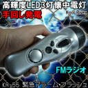 手回し発電機内蔵/FM携帯ラジオ/LEDライト3灯懐中電灯/携帯電話充電/電池不要/台風地震対策/災害/防災/震災手回し充電 クランク発電内蔵 FMラジオ サイレン 懐中電灯 多機能 防災ラジオ 携帯電話スマホ充電 ポータブルラジオ 携帯ラジオ キャンプやアウトドア 送料無料 KR-55【2sp_121122_yellow】 製品仕様・受信周波数 FM 76.00MHz〜108.00MHz・手回し発電機能・携帯電話充電機能・3灯LED懐中電灯・緊急サイレン・フラッシュライト機能・外部電源で充電機...